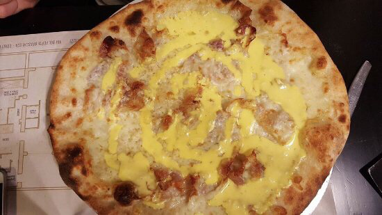 Passò del tempo, molto, troppo, secondo alcuni, e i due se ne uscirono dalla stanza con un’idea, dissero, rivoluzionaria. “Abbiamo chiamato un nostro amico cuoco con molta esperienza, che, con le nostre indicazioni, preparerà un piatto che non si era mai visto: la pizza alla carbonara”.